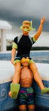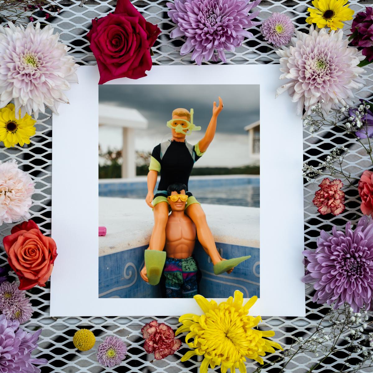 Snorkel masks on, spirits high—these NKOTB dolls are battling it out in a classic poolside chicken fight! This playful fine art print captures a frozen moment of pool party joy, sure to bring a smile to anyone who grew up loving the boys or just enjoys eccentric, joyful decor.