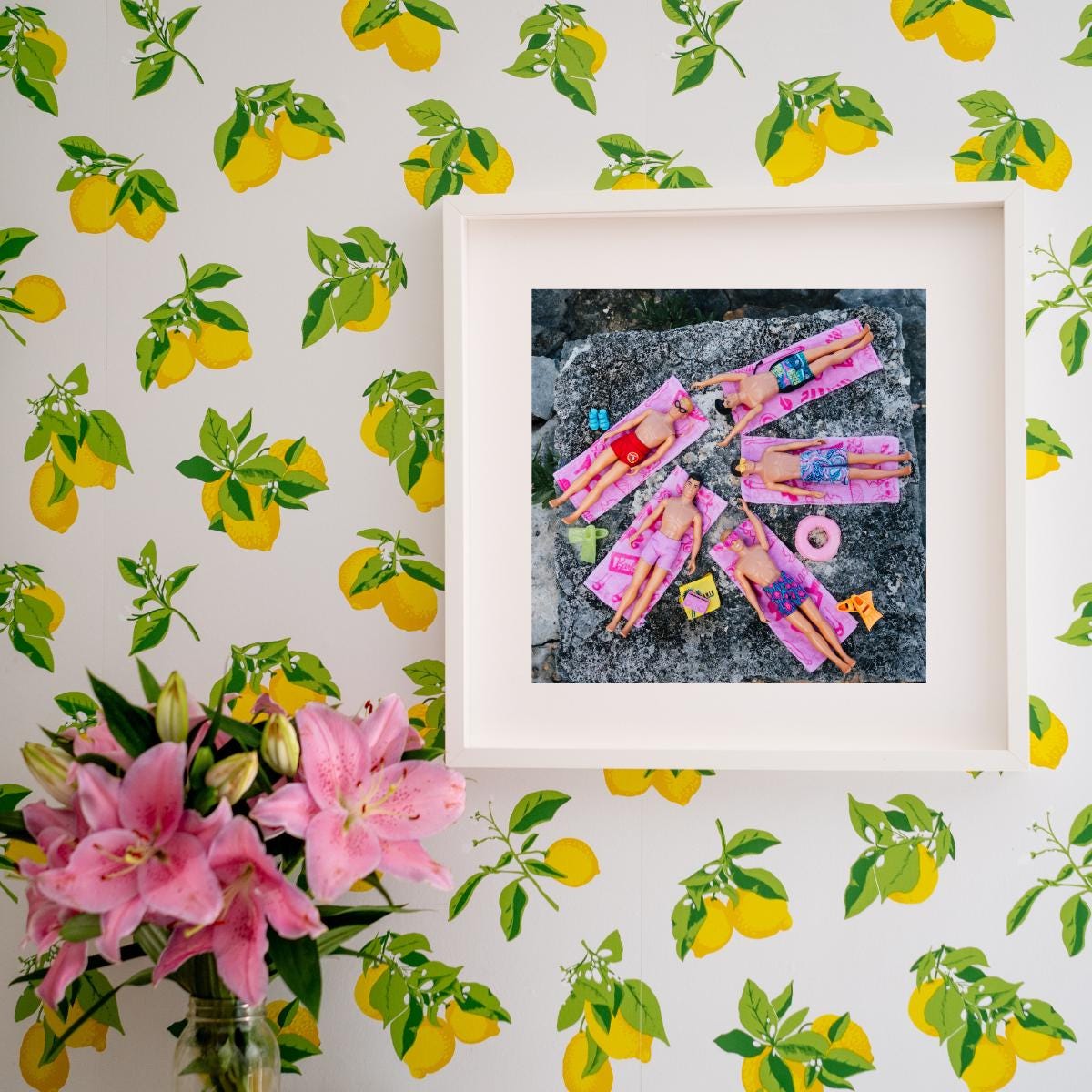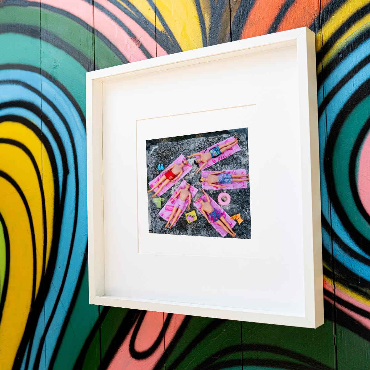 Laid out on tiny towels in front of sparkling Akumal waters, the NKOTB dolls are serving major vacation energy. This print offers laid-back joy and colorful nostalgia, perfect for those who love beachy decor with a quirky twist.